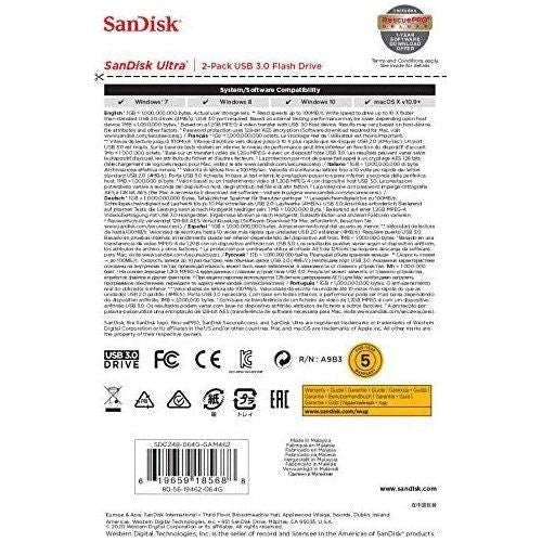 SanDisk 64GB 2-Pack Ultra USB 3.0 Fla...
