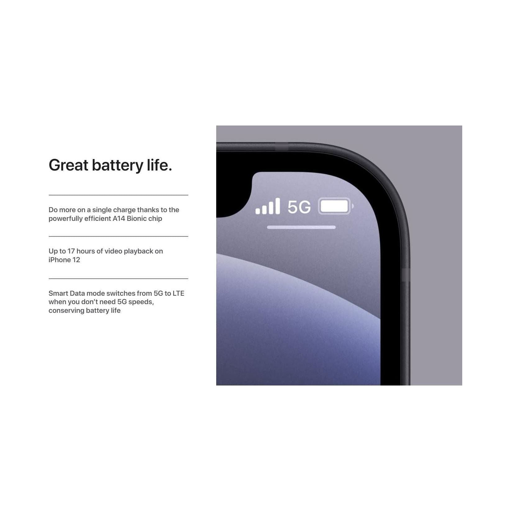 The iPhone 12 mini is the smallest of four iPhone models Apple revealed in its October 2020. It has a 5.4-inch Super Retina XDR display with 2340 x 1080 resolution. Its pixel density comes out to 476 ppi. Other added standard features include its A14 Bionic processor, and a dual-camera system along with 5G connectivity. The iPhone 12 mini comes in 6 colors: Black, White, Green, Blue, Purple and (PRODUCT)RED