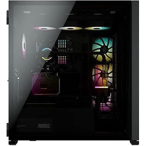 Details: The CORSAIR iCUE 7000X RGB full-tower ATX case puts your build on display behind three tempered glass panels. CORSAIR RapidRoute cable management easily keeps your cables hidden from sight, while a massive interior enables a multitude of cooling options, including room for up to three simultaneous 360mm radiators and customizable side fan mounts that accommodate up to a 420mm radiator. Four included CORSAIR SP140 RGB ELITE fans deliver amazing lighting and concentrated airflow, controlled by an included iCUE COMMANDER CORE XT. Show off your components behind a tool-free tempered glass panel and add your own personal touch with a customizable windowed PSU shroud complete with a three-slot vertical GPU mount. With room for up to ten storage drives, a front I/O panel including a USB Type-C port and four USB 3.0 ports, and easy-access hinged side doors, you can build your magnum opus in the 7000X RGB.