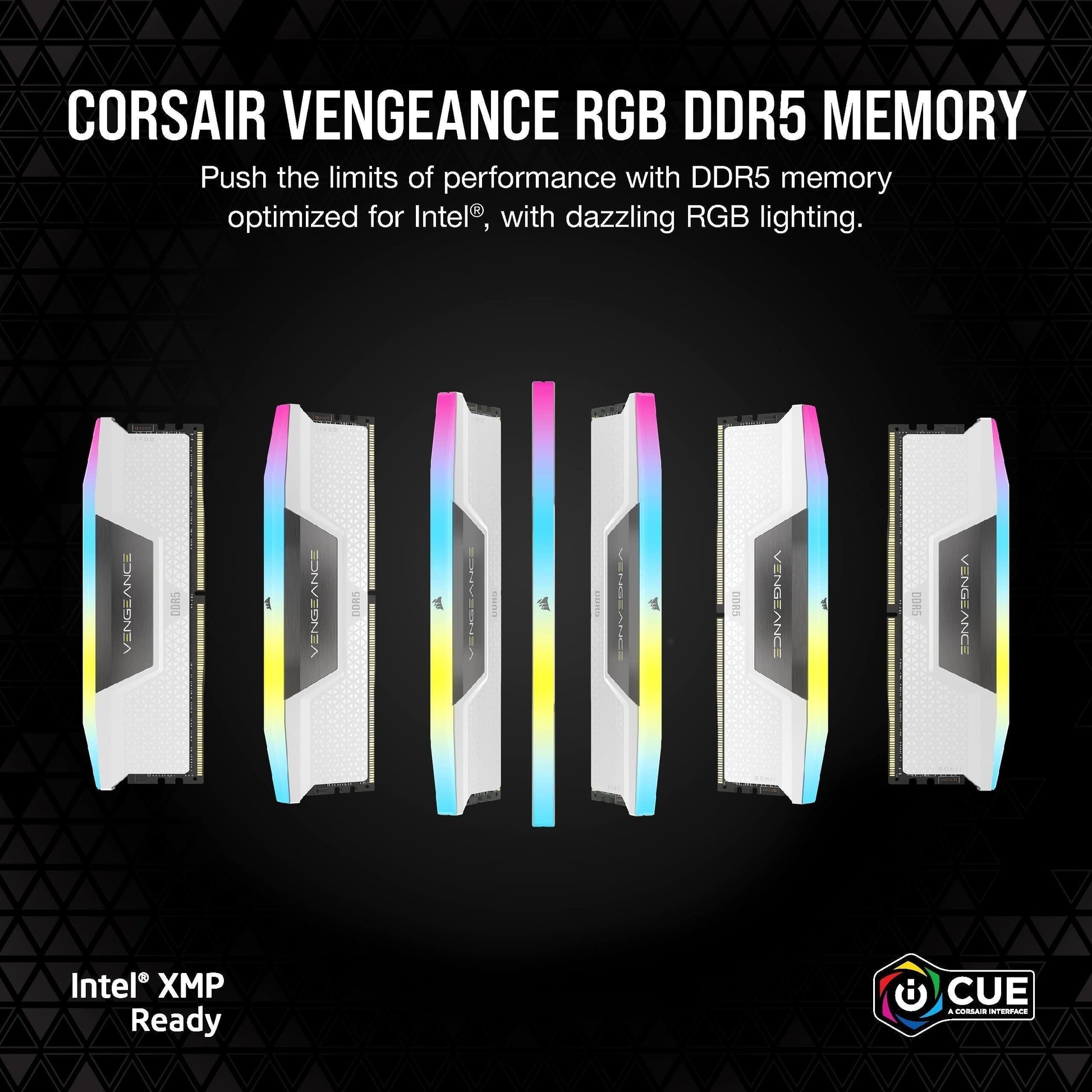 CORSAIR VENGEANCE RGB DDR5 RAM 32GB (2x16GB) 6000MHz CL36 Intel XMP iCUE Compatible Computer Memory - White (CMH32GX5M2D6000C36W)