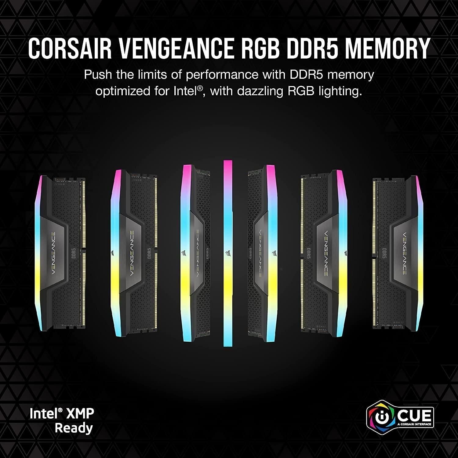 CORSAIR VENGEANCE RGB DDR5 RAM 32GB (2x16GB) 6400MHz CL36 Intel XMP iCUE Compatible Computer Memory - Black (CMH32GX5M2B6400C36)
