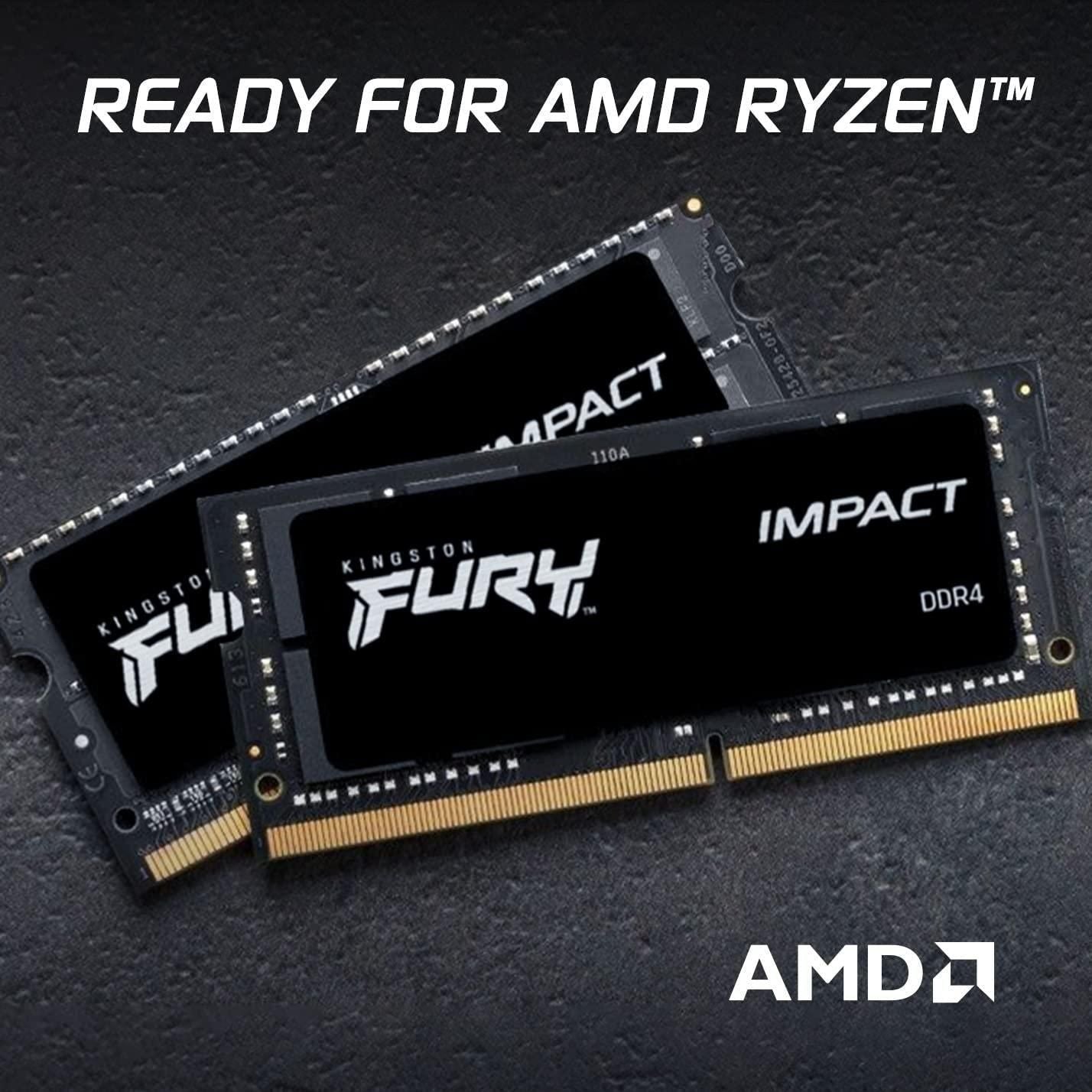 Details: Get your notebook or small form factor machine fully equipped with Kingston FURY Impact DDR4 SODIMM and minimize system lag. Ready for AMD Ryzen and Intel XMP-ready in capacities up to 64GB, Plug N Play FURY Impact DDR4 automatically overclocks to the highest frequency published, up to 3200MT/s, to support Intel and AMD’s latest CPU technologies. Slot in the sleek black PCB for a hassle-free boost, no need to tinker with the BIOS. Upgrade your system’s performance and still run cool, quiet, and efficiently, thanks to FURY Impact DDR4’s low 1.2 voltage.