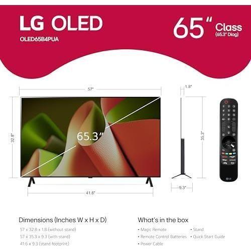 LG 65-Inch Class OLED B4 Series Smart TV 4K Processor Flat Screen with Magic Remote AI-Powered with Alexa Built-in (OLED65B4PUA, 2024)
