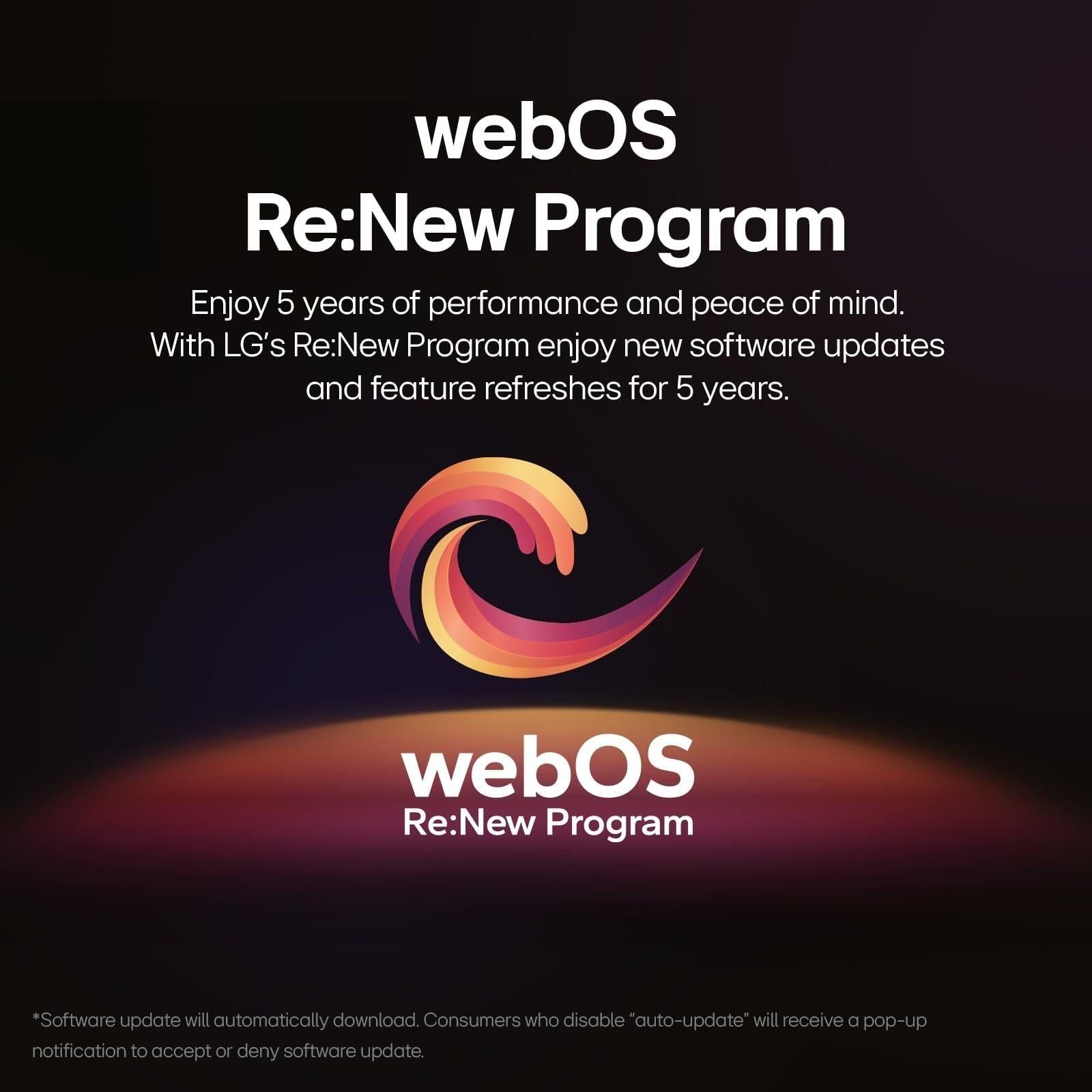 - webOS RE:NEW PROGRAM: Enjoy new software updates and feature refreshes for 5 years with webOS Re:New Program.