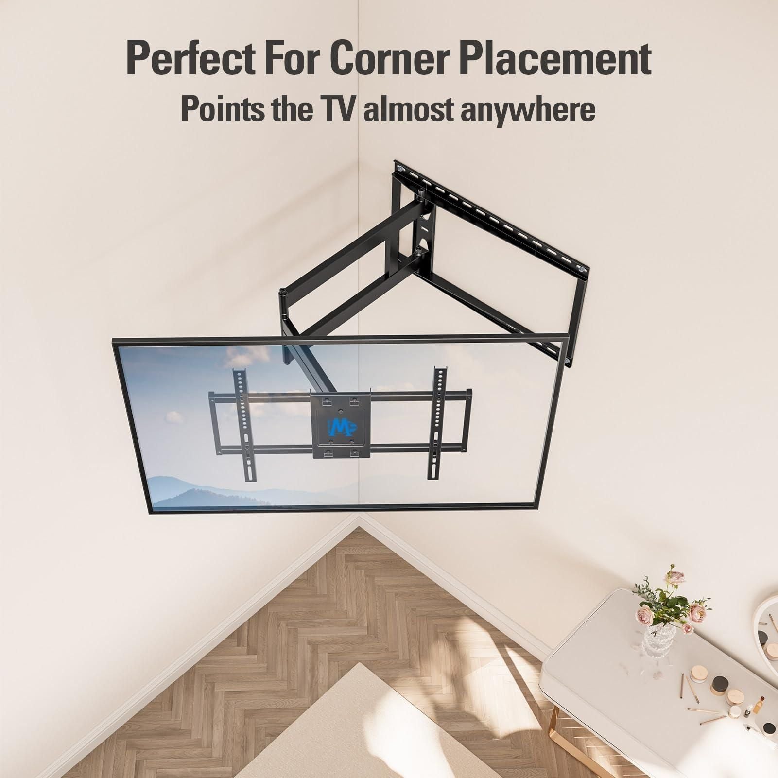 - 40" LONG EXTENSION TV MOUNT - Want a TV wall mount TV bracket with ultimate flexibility? This extra long extension TV wall mount can extend 40” from wall to cover more viewing positions. This long arm TV mount can retract 3” to wall for saving space and a clean look. It is an ideal choice for corner placement and you can watch TV anywhere you want.