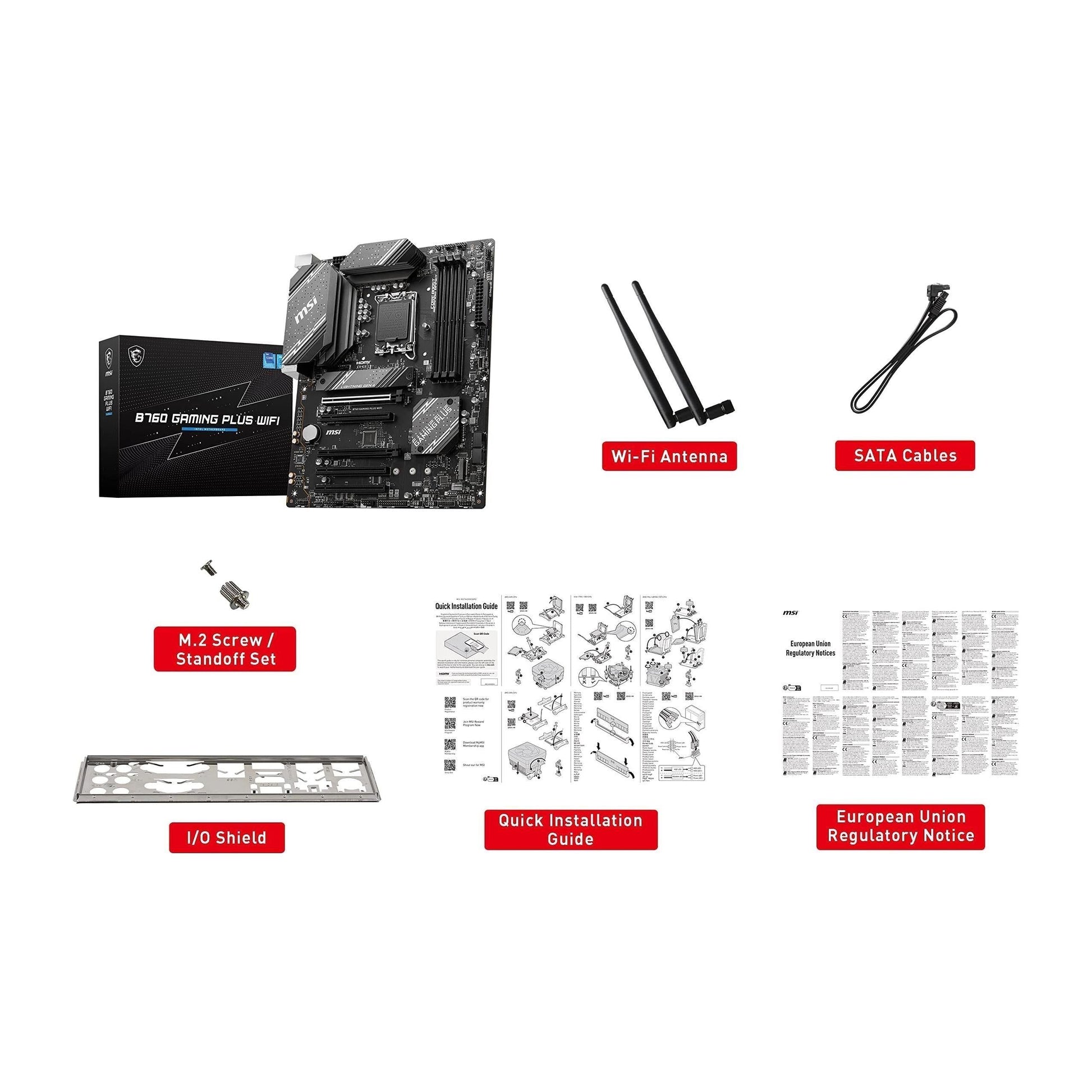 MSI B760 Gaming Plus WiFi Gaming Motherboard (Supports 12th/13th/14th Gen Intel Processors, LGA 1700, DDR5, PCIe 4.0, M.2, 2.5Gbps LAN, USB 3.2 Gen2, HDMI/DP, Wi-Fi 6E, Bluetooth 5.3, ATX)