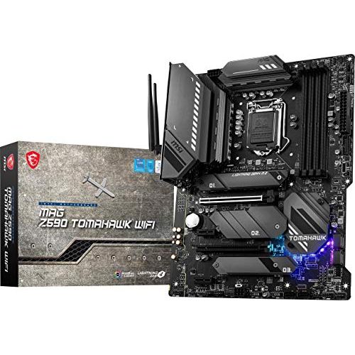 MSI MAG Z590 TOMAHAWK WIFI Gaming Motherboard (ATX, 11th/10th Gen Intel Core, LGA 1200 Socket, DDR4, PCIe 4, CFX, M.2 Slots, USB 3.2 Gen 2, Wi-Fi 6E, DP/HDMI, Mystic Light RGB)