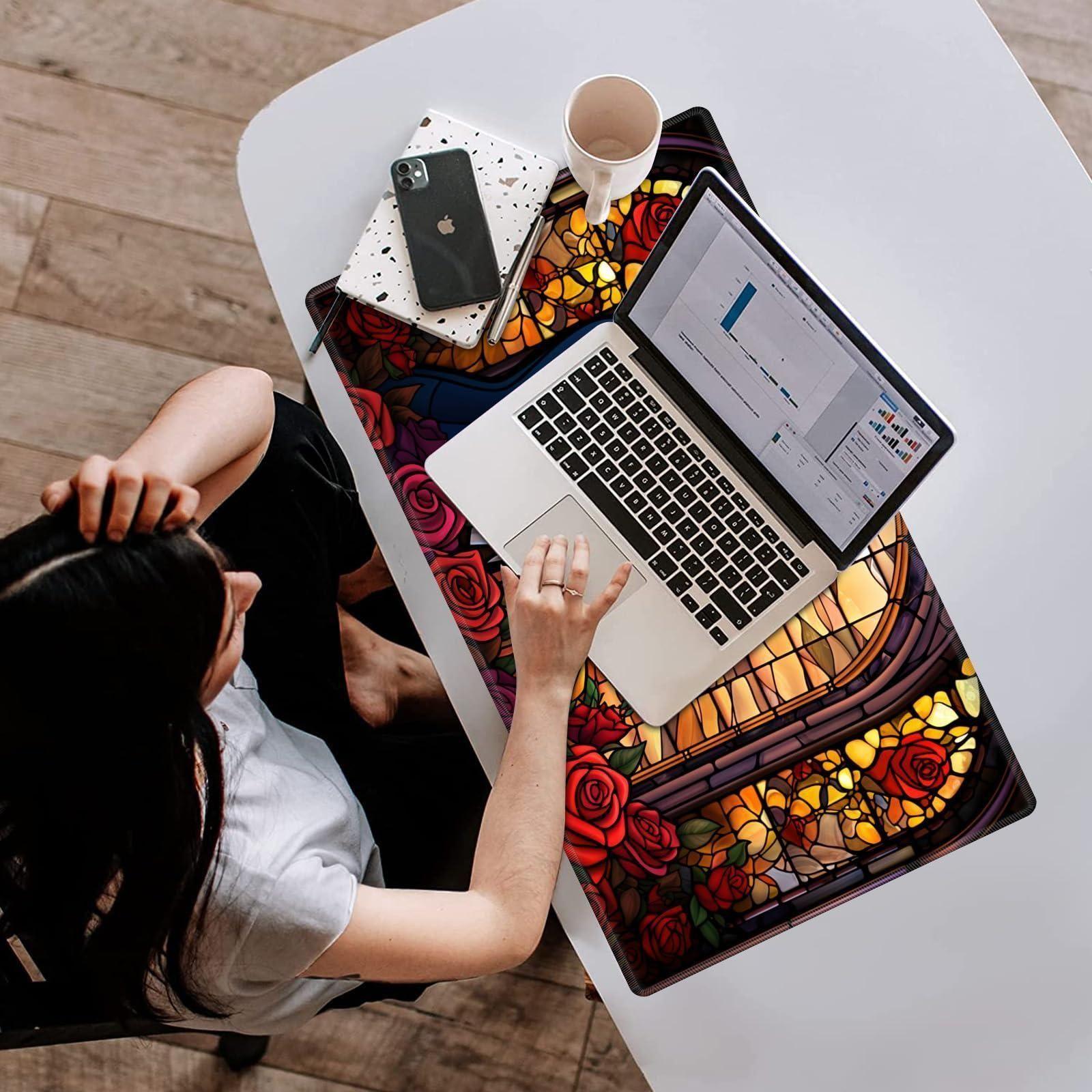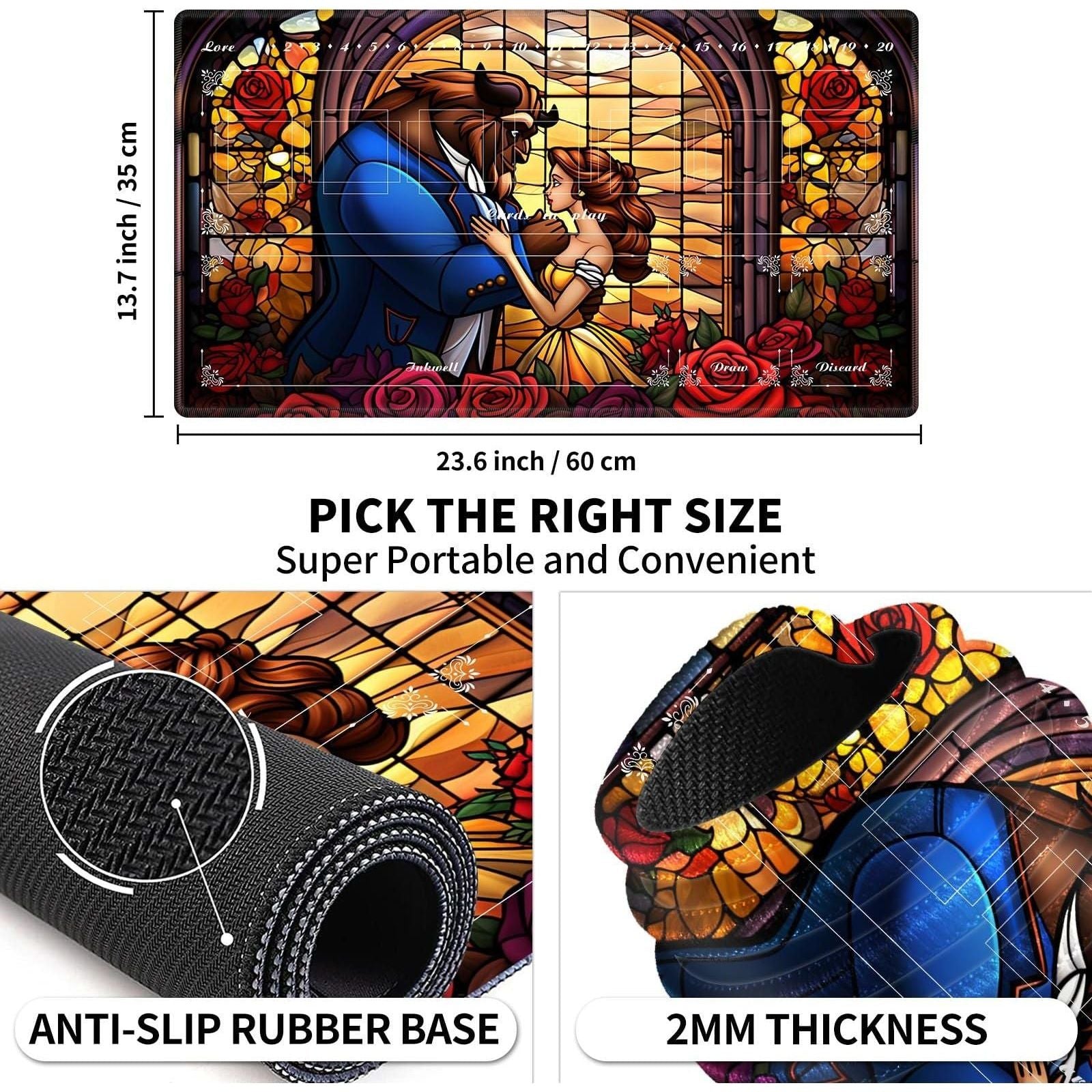 Playmat with Zones for Card Game Playing, Compatible with Lorcana TCG Cards Game Mats 24"x14" Commander Deck Gaming Duel Mat Card Gameplay Mats for Beginner, Magic Rose Beauty