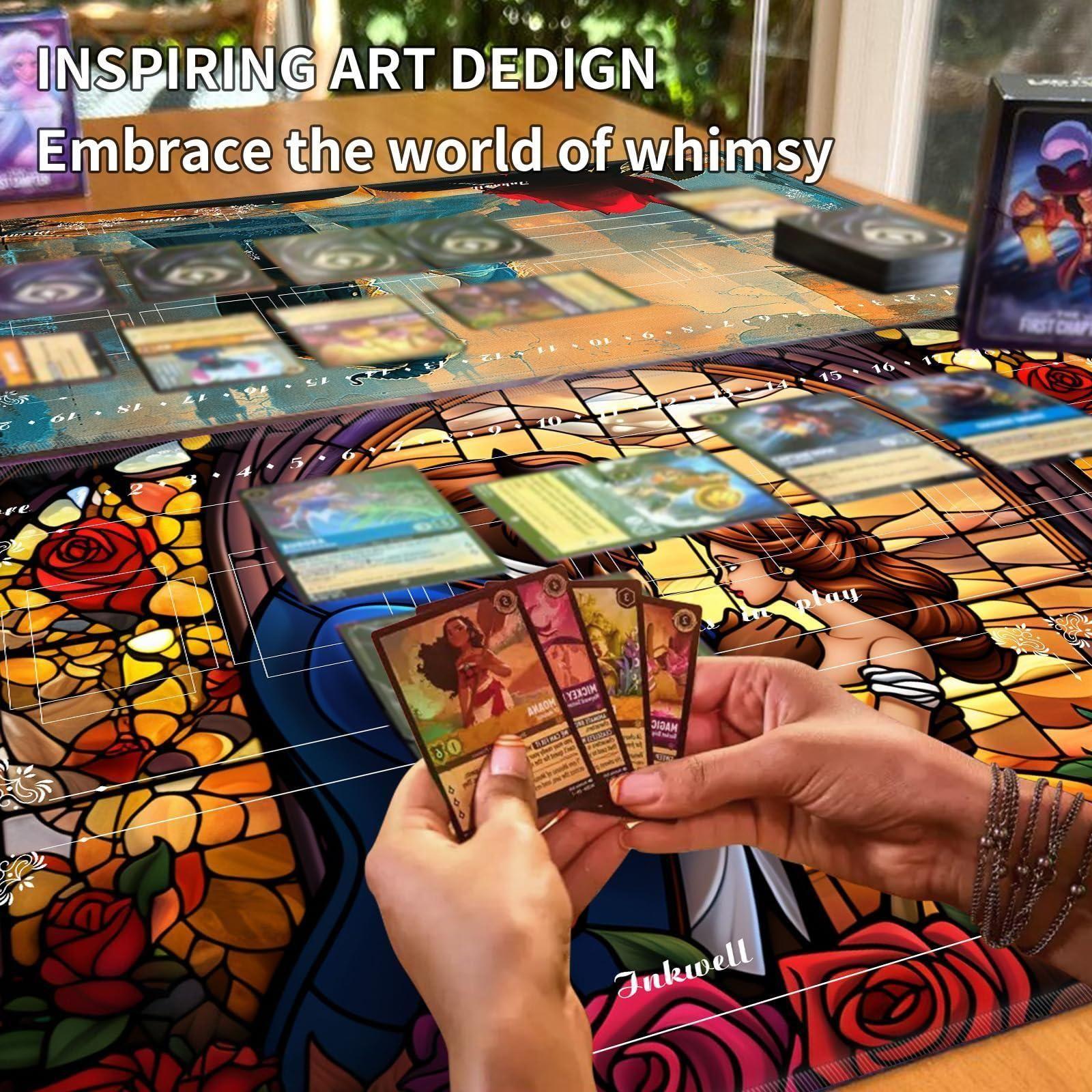- 【Playmats for Gaming Setups】Stunning original artwork design for Lorcana playmat captures the essence of enchanting world and take your imagination to epic heights, providing an immersive experience like no other. Playmat with Zone Perfect for family to learn the game step by step, especially for the one as a new player. Use our tabletop gaming mats to prepare for an upcoming family game night!
