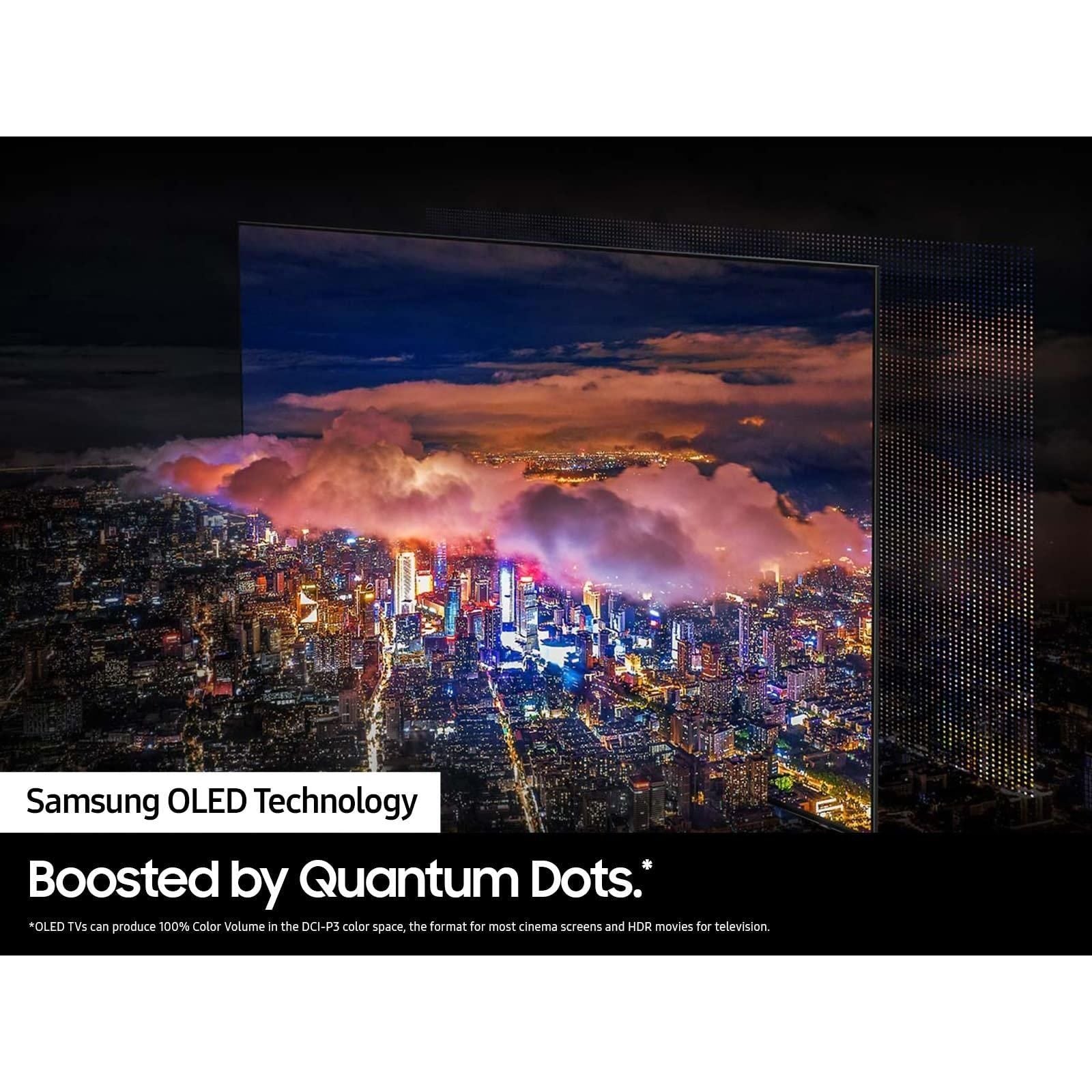 - SAMSUNG OLED TECHNOLOGY: Only Samsung can provide this incredible detail and unbelievable screen brightness with pure blacks and more than a billion shades of color powered by QD technology, combined with 8.3 million self-illuminating pixels*.voltage : 120 volts