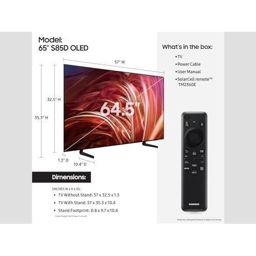SAMSUNG 65-Inch Class OLED 4K S85D Series HDR Smart TV w/Dolby Atmos, Object Tracking Sound Lite, Contour Design, Motion Xcelerator, Real Depth Enhancer, Alexa Built-in (QN65S85D, 2024 Model)