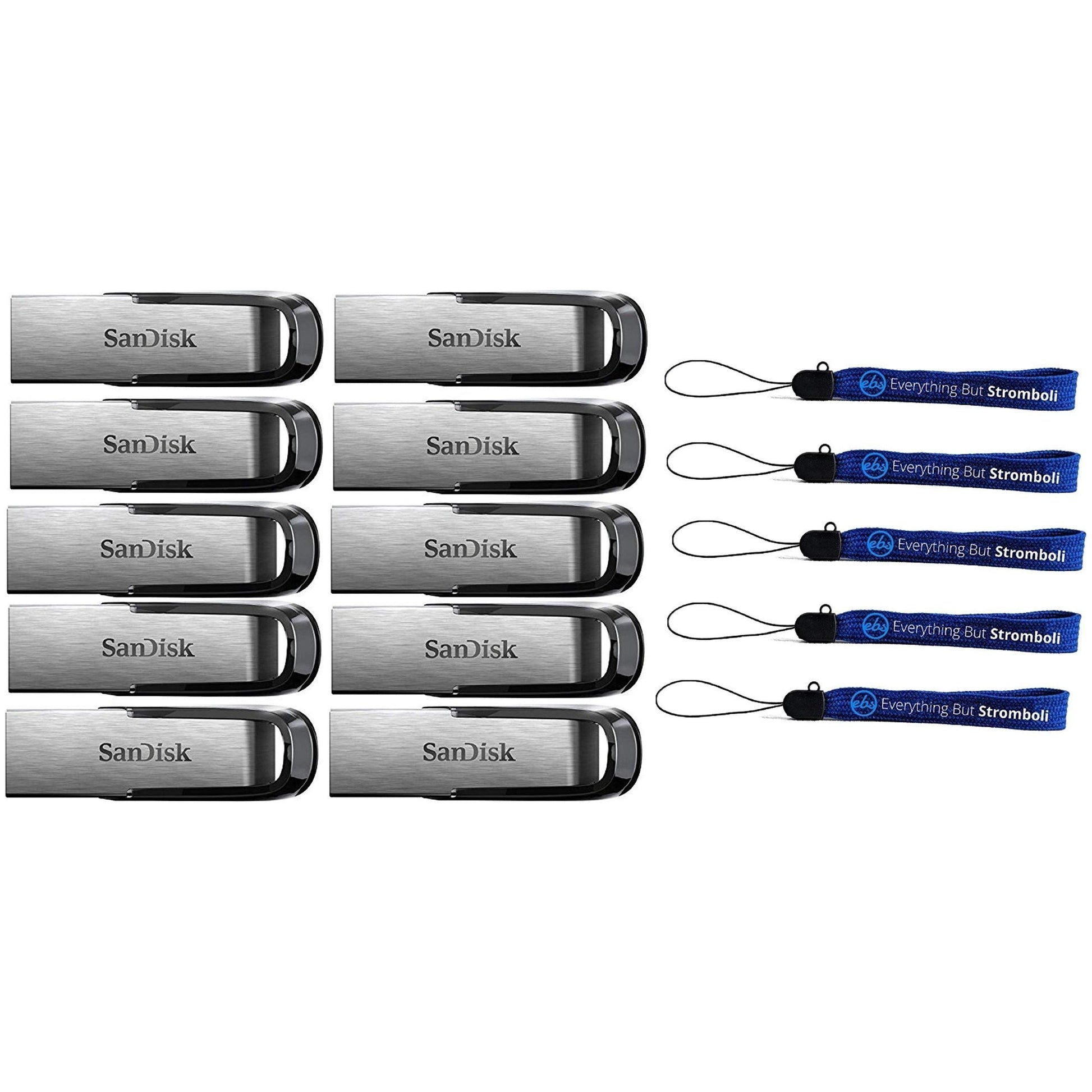 SanDisk Ultra Flair USB (10 Pack) 3.0 Flash Drive High Performance Jump Drive/Thumb Drive/Pen Drive up to 130MB/s - Bundle with (5) Everything But Stromboli Lanyard (16GB)