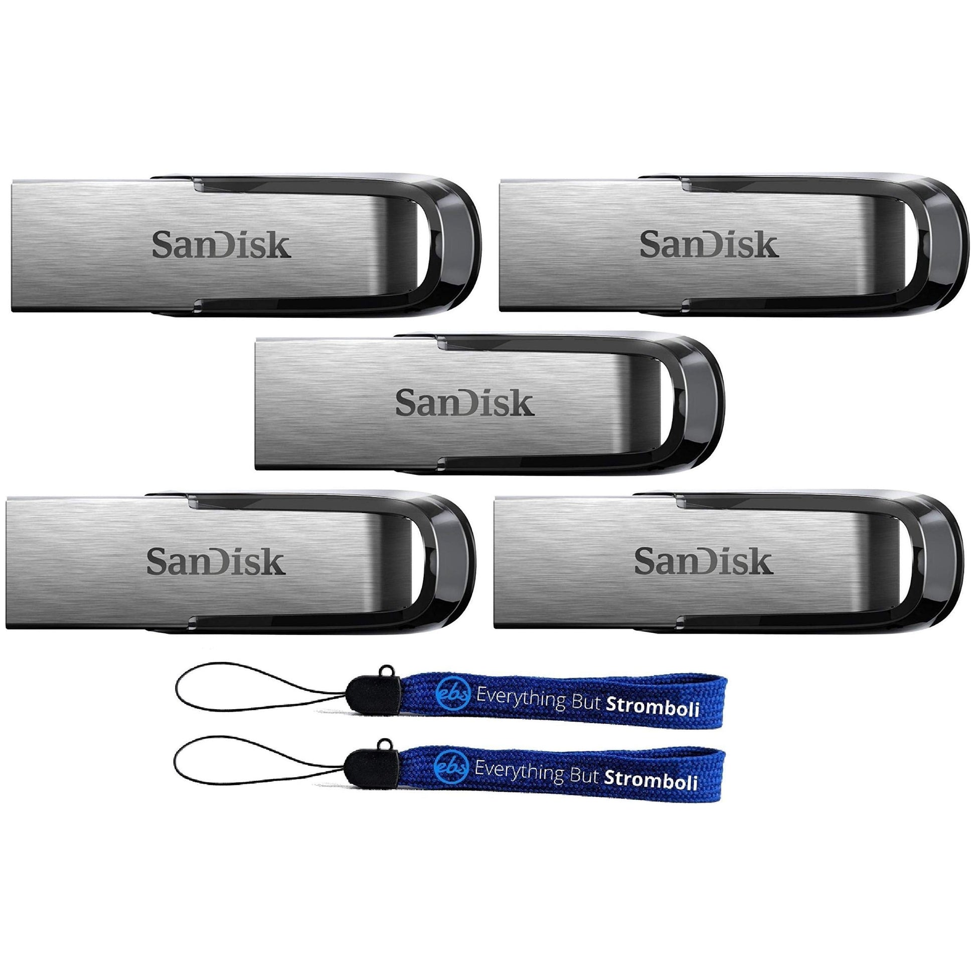 SanDisk Ultra Flair USB (5 Pack) 3.0 128GB Flash Drive High Performance up to 150MB/s - with (2) Everything But Stromboli (tm) Lanyard